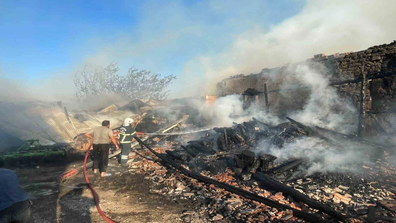 BURDUR MERKEZE BAĞLI İĞDELİ KÖYÜNDE KAYNAK MAKİNESİNDEN SIÇRAYAN KIVILCIMLARIN SAMANLARI TUTUŞTURMASI SONUCU 2 KATLI AHŞAP EV, MİNİBÜS, SAMAN BALYALARI VE AHIR TAMAMEN YANARKEN AHIRDA BULUNAN 3 BUZAĞI TELEF OLDU.