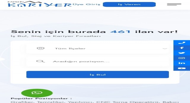 Kayseri Büyükşehir Belediyesi; iş gücü piyasasına yönelik yenilikçi ve teknoloji odaklı bir hamleyle, işçi ve işvereni bir araya getiren dijital platformunu Malatya Büyükşehir Belediyesi’ne sunuyor. Kayseri Kariyer Merkezi tarafından da verimli bir şekilde kullanılan başarılı platform Malatya Büyükşehir Belediyesi’ne de hizmet verecek.