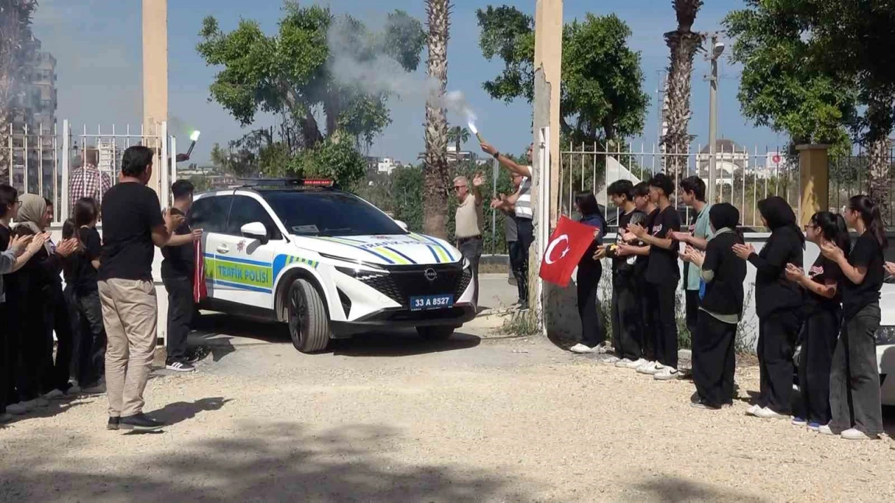 Mersin’in Erdemli ilçesinde öğrenciler ve minibüsçüler trafik ekiplerinin haftasını sürpriz bir etkinlikle kutladı. Kaza anonsuyla Kocahasanlı Anadolu Lisesine gelen ekipler meşaleler ve alkışlarla karşılandı, ardından kutlama pastası kesildi.