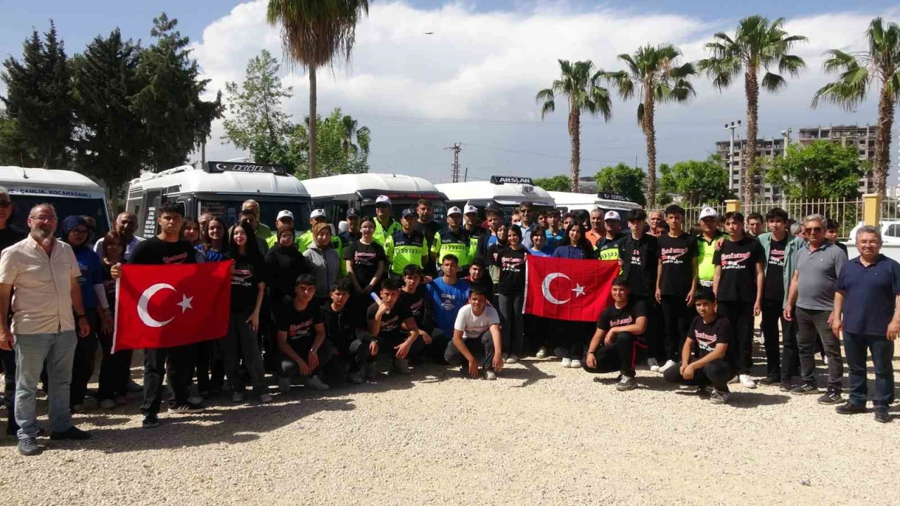 Trafik ekipleri kutlamada bir araya gelen öğrenci ve minibüsçülerden oluşan topluluğa, kask kullanımı, emniyet kemeri başta olmak üzere bilgiler verdi.