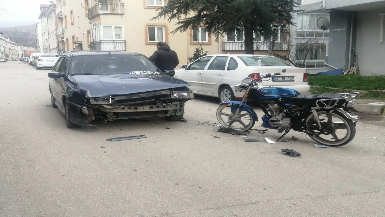 Kaza, akşam saatlerinde Isparta’nın Yalvaç ilçesi Görgü Bayram Mahallesi Callak Çeşme Sokak’ta meydana geldi. Edinilen bilgiye göre, T. K.Ü. (15) idaresindeki plakasız motosiklet ile S.E. yönetimindeki 26 AHH 809 plakalı Fiat marka otomobil çarpıştı.