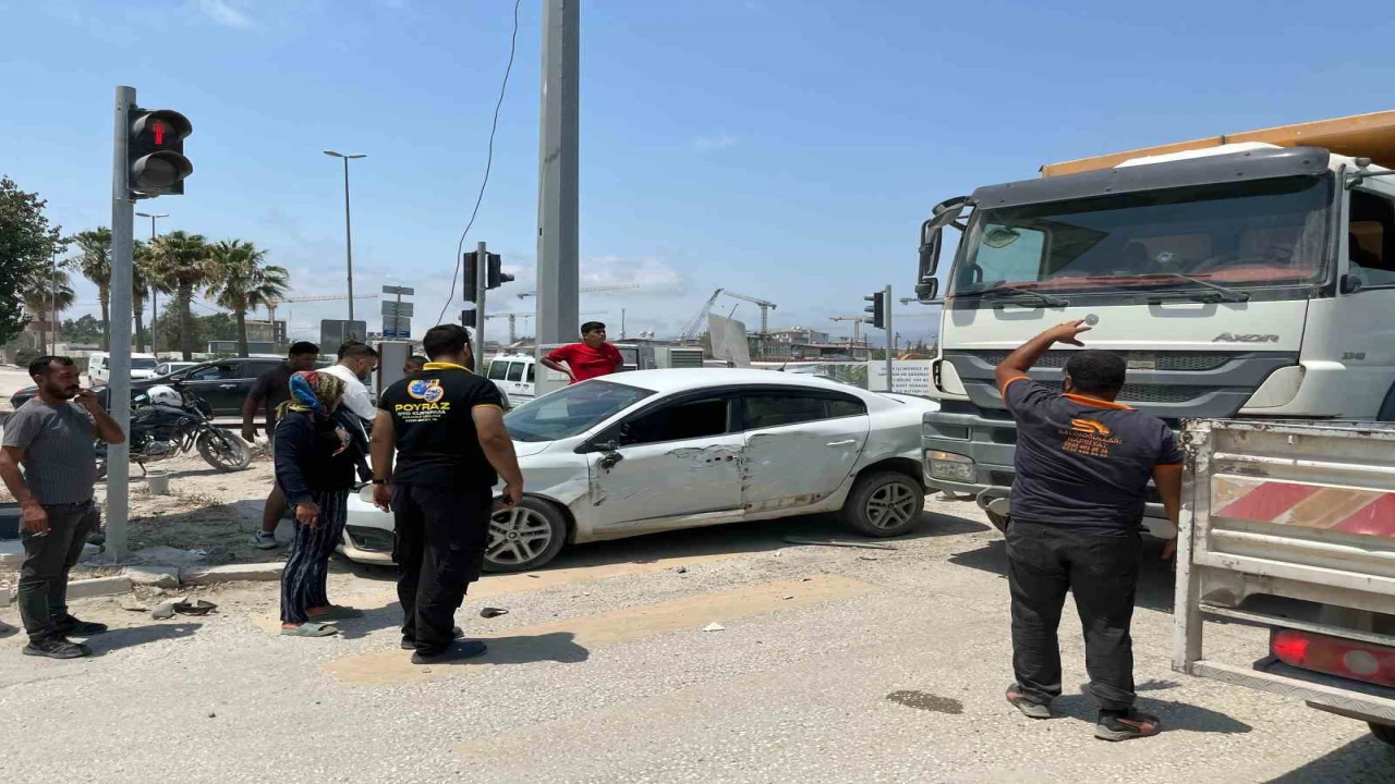 Kaza, Antakya ilçesi Akasya Mahallesi 75. Yıl Bulvarı’nda yaşandı. Trafik ışıklarının yeşile dönmesiyle birlikte hareket eden 01 ATT 121 plakalı hafriyat kamyonu ile 31 AAH 435 plakalı otomobille çarpıştı. Kazada kamyonun kör noktasına denk gelen otomobil, refüje sürüklendi. Yararlanın olmadığı kaza anbean güvenlik kamerasına yansırken görüntülerde kaldırımda bekleyen vatandaşın anlık refleksle araçların altında kalmaktan son anda kurtulduğu görüldü.
