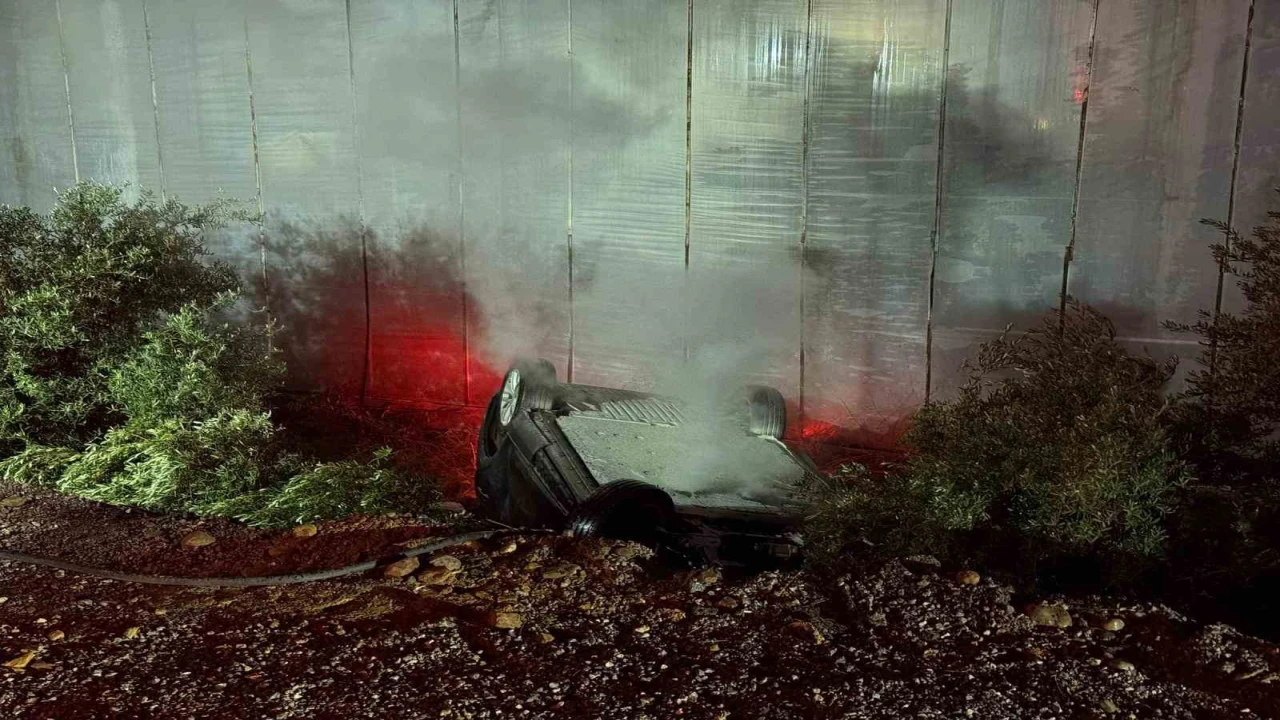 Mersin’de seraya çarpıp ters dönen elektrikli araçtaki batarya yangını itfaiye ekiplerince söndürülürken, sürücü hastaneye kaldırıldı.