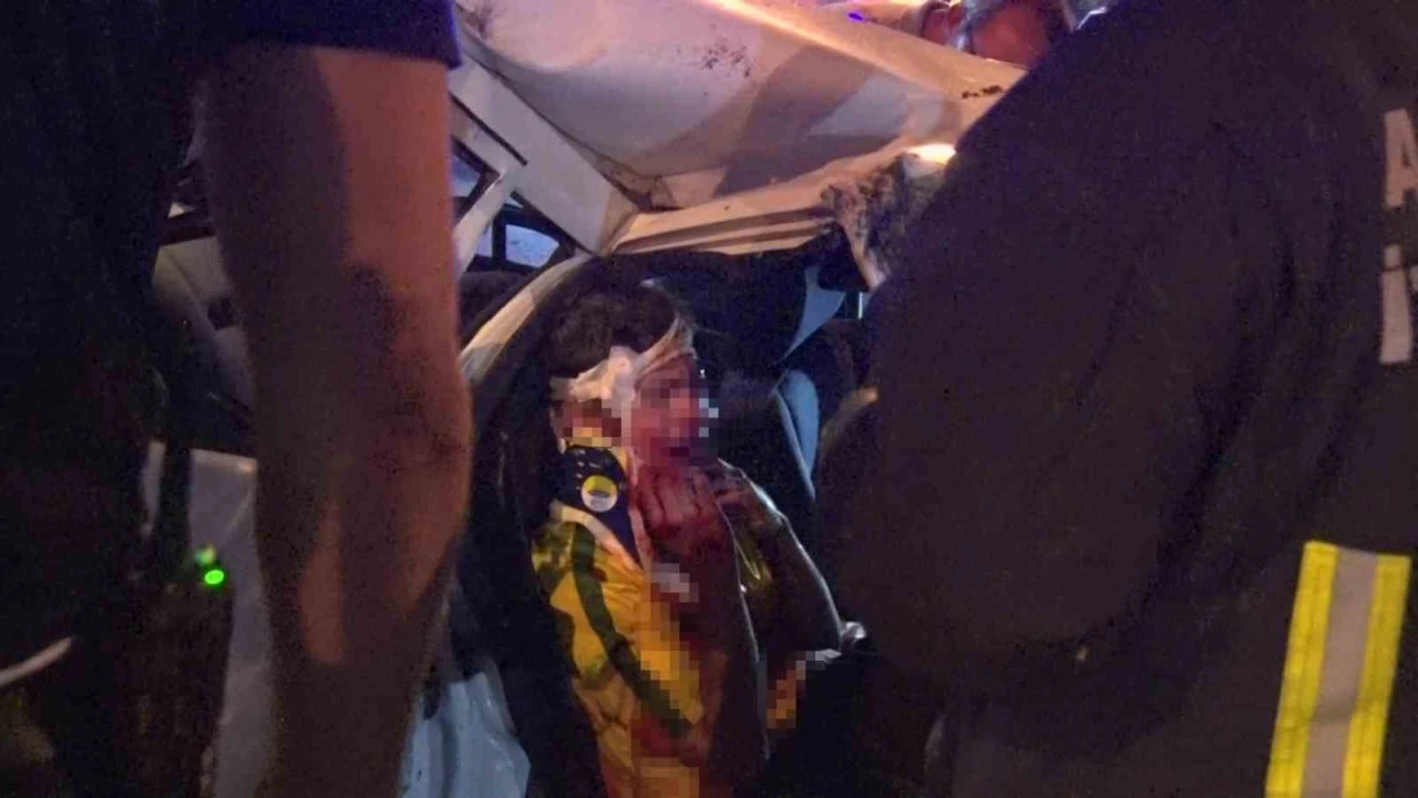 Antalya’da kontrolden çıkarak refüjdeki palmiyeye çarpan araç hurdaya döndü. Araç içerisinde sıkışan sürücüyü vatandaşlar çıkartırken, yanındaki kardeşi ise itfaiye ekipleri tarafından kurtarıldı. Kazayı haber alarak gelen gençlerin babası, acı içinde araçtan çıkartılmayı bekleyen oğlunu "Bekle alacaklar babam seni, metanetli ol. Bir şeyin yok" sözleriyle, yaralanan sürücü kızını da "Her şey gitsin babacım, canımız gitmesin. Hiç korkma kızım tamam mı. Her şey geçecek, kardeşini çıkardılar. Eve gideceğiz" diyerek sakinleştirmeye çalıştı. Araçtan çıkartılan yaralı kardeşler, tedavi için hastaneye götürüldü.