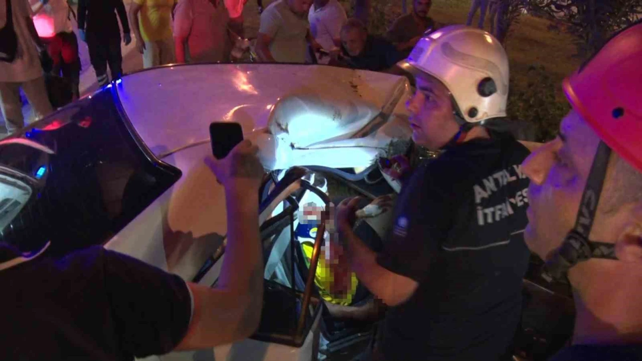Kaza, dün akşam saat 23.00 sıralarında Kepez ilçesi Altınova Mahallesi Serik Caddesi yan yolda meydana geldi. Edinilen bilgiye göre, S.B.’nin kullandığı 07 VS 888 plakalı Mercedes marka otomobil, sürücünün direksiyon hakimiyetini kaybetmesi sonucu kontrolden çıkarak savruldu. Otomobil refüjdeki palmiye ağacına çarparak durabilirken, araçta bulunan sürücü genç kız ve kardeşi Yunus Emre B. araç içerisinde sıkıştı. Hurdaya dönen otomobilde sıkışan gençlerin yardımına çevredeki vatandaşlar ve yoldan geçen diğer sürücüler koştu. Araç sürücüsü genç kız bulunduğu yerden vatandaşların yardımıyla çıkartılırken, olayın 112 Acil Çağrı Merkezi’ne bildirilmesi ile olay yerine itfaiye, sağlık ve polis ekipleri sevk edildi. Kısa sürede olay yerine gelen sağlık ekipleri, araç içerisinde sıkışan Yunus Emre B.’yi ilk müdahaleyi yaptı. Ardından Antalya Büyükşehir Belediyesi İtfaiye Daire Başkanlığı’na bağlı kurtarma ekibi, yaralı genci bulunduğu yerden çıkarmak için çalışma başlattı.