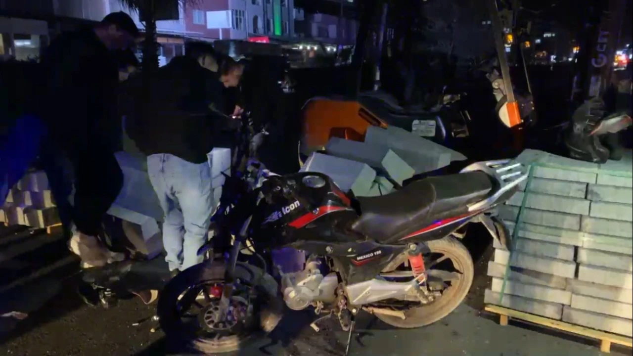 Kaza, ilçeye bağlı Akdeniz Mahallesi’nde Mersin Antalya D-400 kara yolunun yapım çalışması sebebiyle kapalı olan Mersin istikametinde meydana geldi. E.C. (52) yönetimindeki 01 ATV 355 plakalı motosiklet seyir halindeyken yol çalışmasında kullanılan parke ve bordür taşı paletine çarptı. Çarpmanın etkisiyle savrulan sürücü E.C. ve motosiklette yolcu olarak bulunduğu belirtilen Ö.Ş. (64) yaralandı.