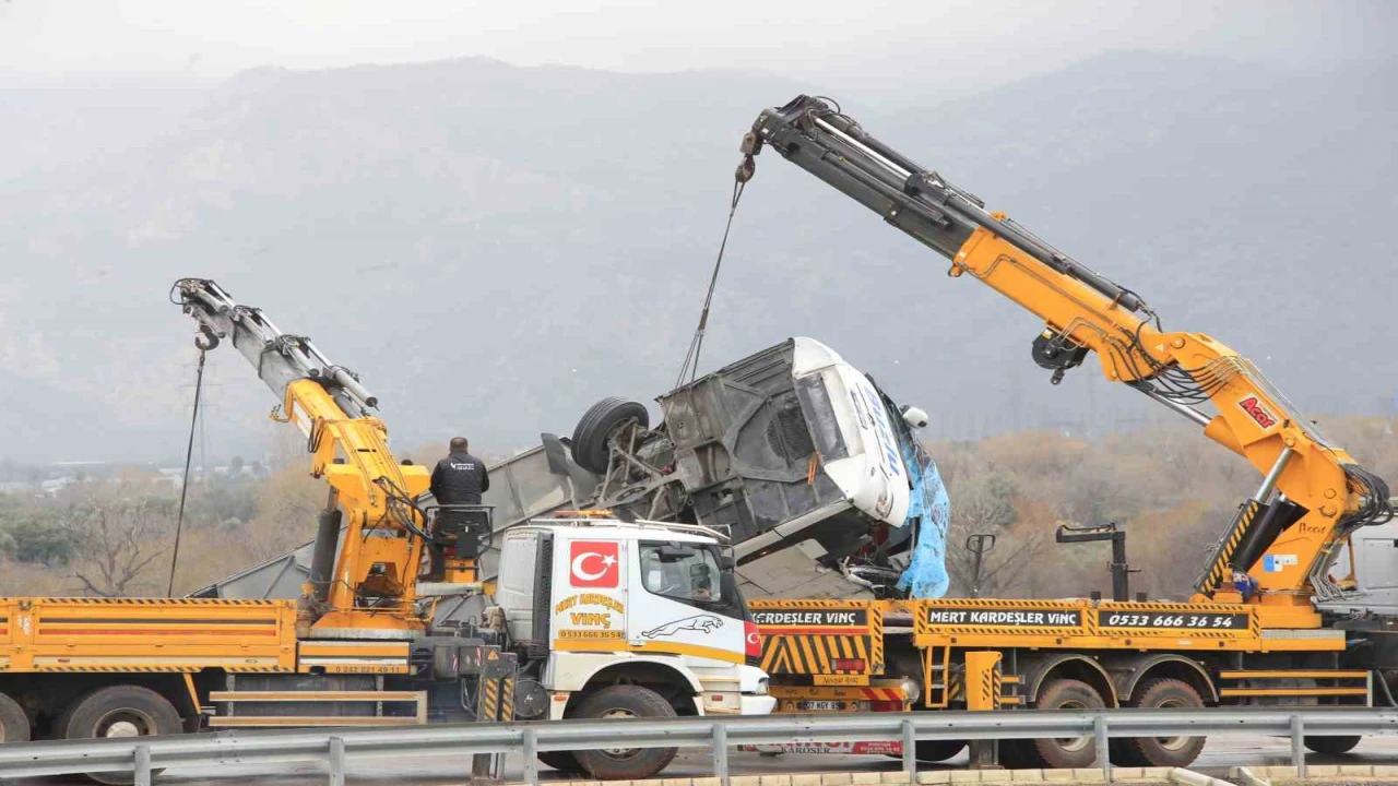 Öte yandan, kaza yapan otobüs yaralıların hastaneye sevk edilmesi ve olay yeri inceleme ekibinin çalışmasının ardından vinçler yardımıyla çekiciye yüklenerek olay yerinden kaldırıldı. Otobüsün kaldırılmasının ardından jandarma ekipleri otobüsün altında kalan başka cesetler olma ihtimaline karşı arama yaptı.