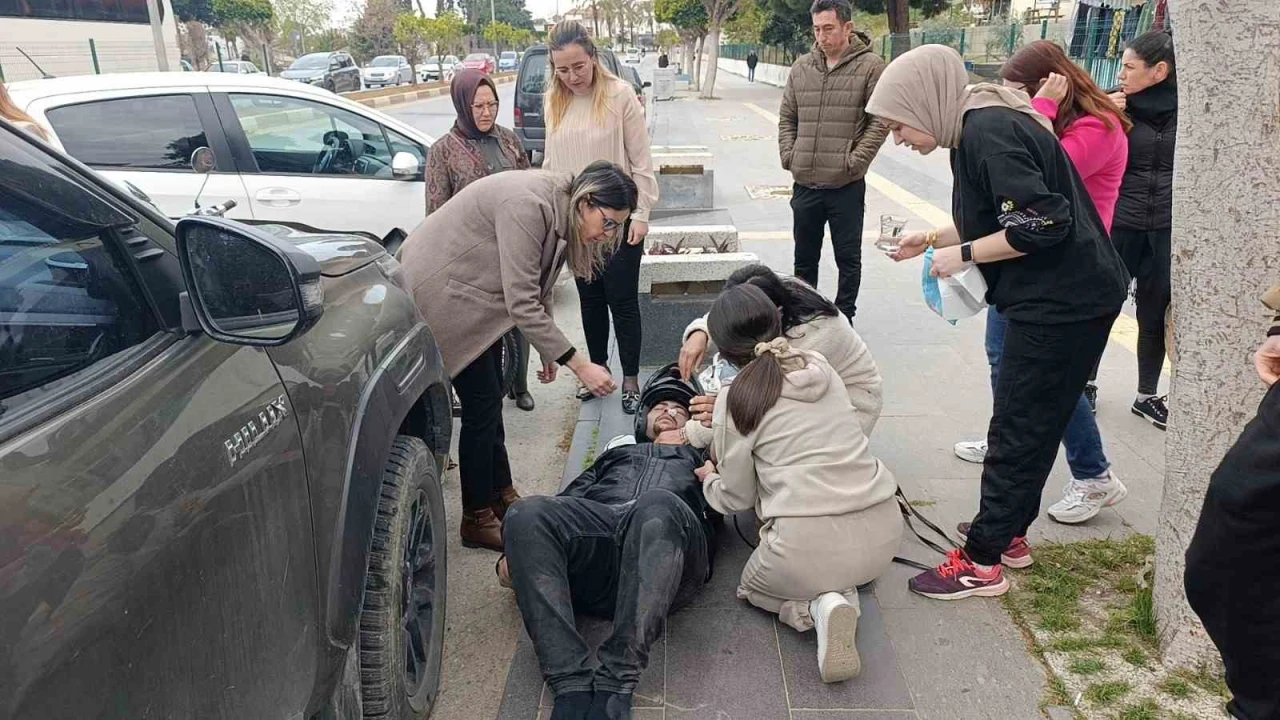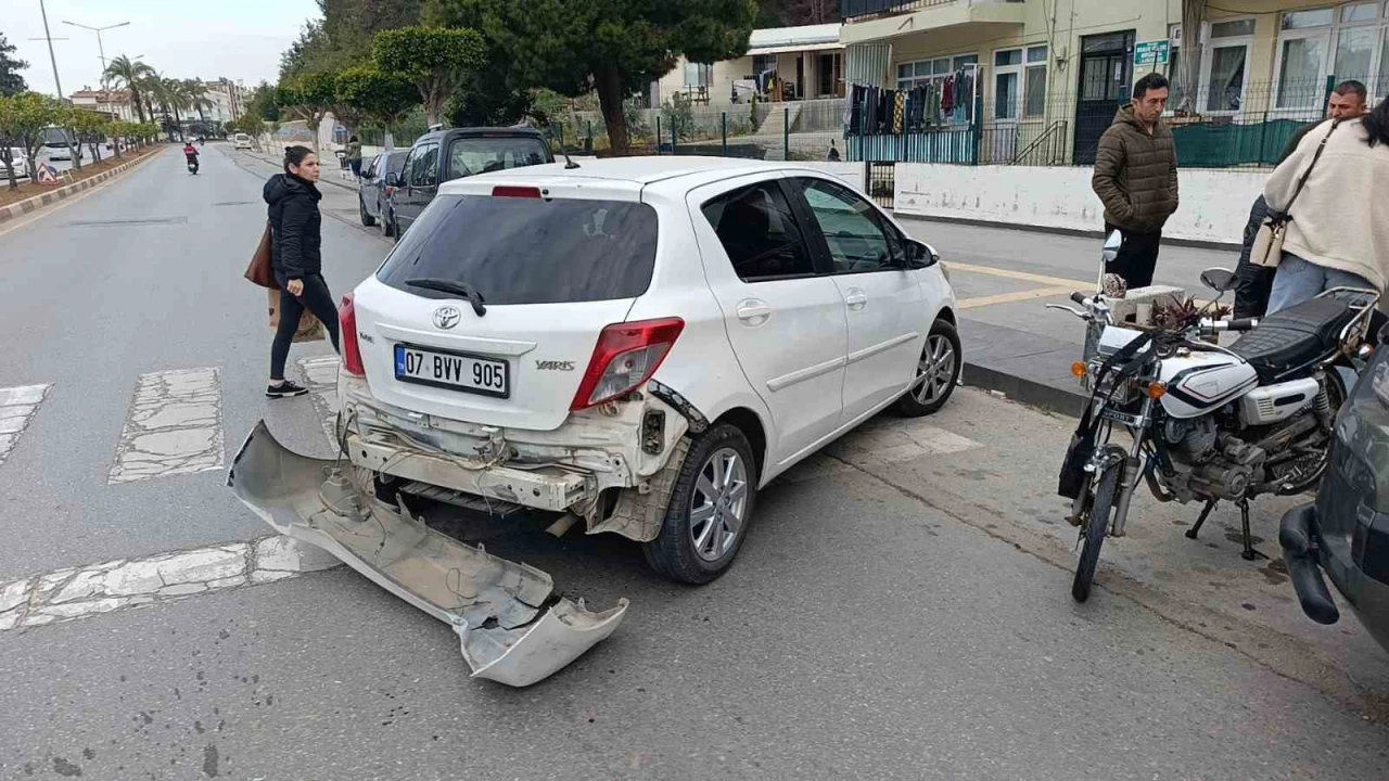 Kaza, Manavgat ilçesi Antalya Caddesi’nde meydana geldi. Edinilen bilgiye göre, seyir halindeki Mehmet B.’nin kullandığı 07 ARM 810 plakalı motosiklet, aynı istikamette seyir halindeyken park etmek için yavaşlayan Gülbahar Z.’nin kullandığı 07 BVV 905 plakalı Toyota marka otomobille çarpıştı. Çarpmanın şiddetiyle yola savrulan motosiklet sürücüsü başındaki kask sayesinde kazayı hafif yaralı olarak atlattı. Yaralı motosiklet sürücüsünün yardımına kazanın meydana geldiği yerde bulunan sağlık ocağında görevli sağlıkçılar koştu. Elinde steteskop ve tansiyon aleti ile gelen sağlık görevlisi yaralıya ilk müdahaleyi yaparak sağlık durumunu kontrol etti. Yaralı sürücü, 112 Sağlık ekiplerinin olay yerindeki müdahalesinin ardından ambulansla hastaneye kaldırıldı. Kazayı trafik polisine anlatan sürücü Mehmet B., 65-70 kilometre hızla ilerlerken, önündeki otomobilin sağ tarafa dönmek için durduğunu, frene basmasına rağmen motosikletin tekerinin kayarak otomobile arkadan çarptığını belirtti.