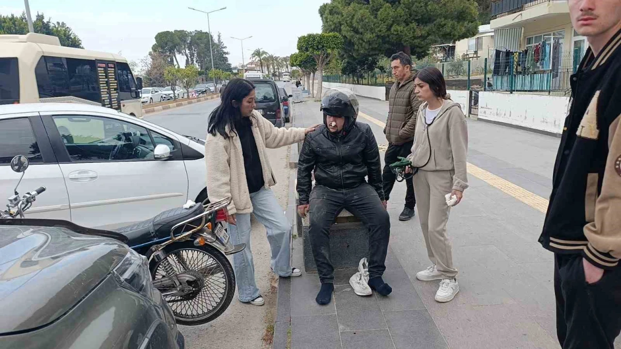 Antalya’nın Manavgat ilçesinde meydana gelen trafik kazasında yaralanan motosiklet sürücüsünün yardımına sağlık ocağında görevli sağlıkçılar koştu. Elinde steteskop ve tansiyon aleti ile gelen bir sağlıkçı, yaralı sürücünün durumunu kontrol etti.