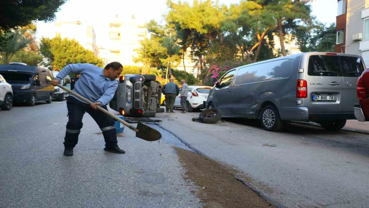 Kaza, saat 16.00 sıralarında Antalya’nın Konyaaltı ilçesi Gürsu Mahallesi 336 sokak üzerinde meydana geldi. Edinilen bilgiye göre, sokak üzerinde seyir halindeki 07 BDC 721 plakalı Citroen marka araç sürücüsünün direksiyon hakimiyetini kaybetmesi sonucu park halindeki 07 BOE 783 plakalı Opel marka araca, ardından da 07 LLR 11 plakalı araca çarptıktan sonra takla atarak yan yattı. Gürültüyü duyan çevredeki vatandaşların 112 Acil Çağrı Merkezi’ne ihbarı ile olay yerine itfaiye ve polis ekipleri sevk edilirken araçta bulunan ve isminin Cemal A. olduğu öğrenilen şahıs vatandaşların yardımıyla çıkartıldı. Trafik ekiplerinin kaza ile ilgili işlemi sırasında olay yerinden ayrılmak isteyen Cemal A.’ya polisler engel oldu.