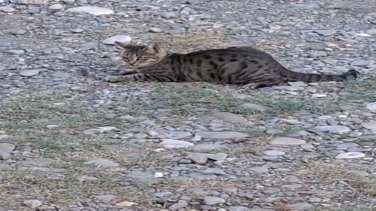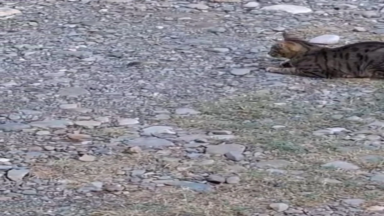 ADANA’NIN KOZAN İLÇESİNDE BİR BAHÇEDE FAREYLE KARŞILAŞAN KEDİ, FAREYLE DAKİKALARCA OYNADI.