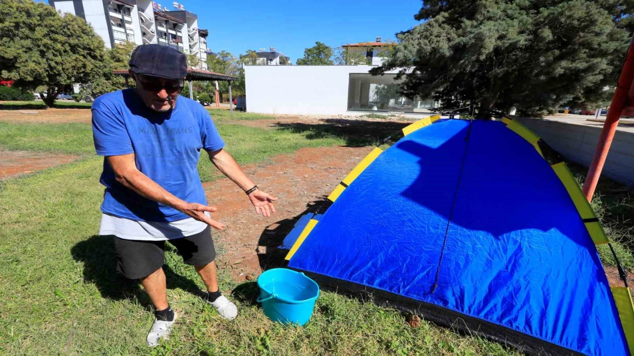 Bu olayın sonucunda çıkan tartışmada eşine bir tokat vurarak evden kovduğunu söyleyen Necdet T, "Bir gün sonra kapımı polisler çaldı. Eşimin darp raporu alarak uzaklaştırma kararı aldırdığını ve evi terk etmem gerektiğini söylediler. Bir haftadır dışardayım. Beni aldatma ilişkisini asla kabul edemem. Eşyalarımı istedim vermedi. Yasağı ihlal etmemek için mahallenin çocuklarını gönderdim. Çocukları azarlayıp kovdu. En son dün 112’yi aradım. Ekim ayında olduğumuzu üşüdüğümü, yardım etmelerini istedim. 2 polis memuru geldi, durumumu onlara da izah ettim. Gidip eşyalarımı aldılar. Birlikte eşyaları indirdik. Buraya getirdim, çadırı kurdum. Çöpten bulduğum kovaya su doldurup güneşe koyuyorum. Ilıklaşınca başımı yıkıyorum" dedi.