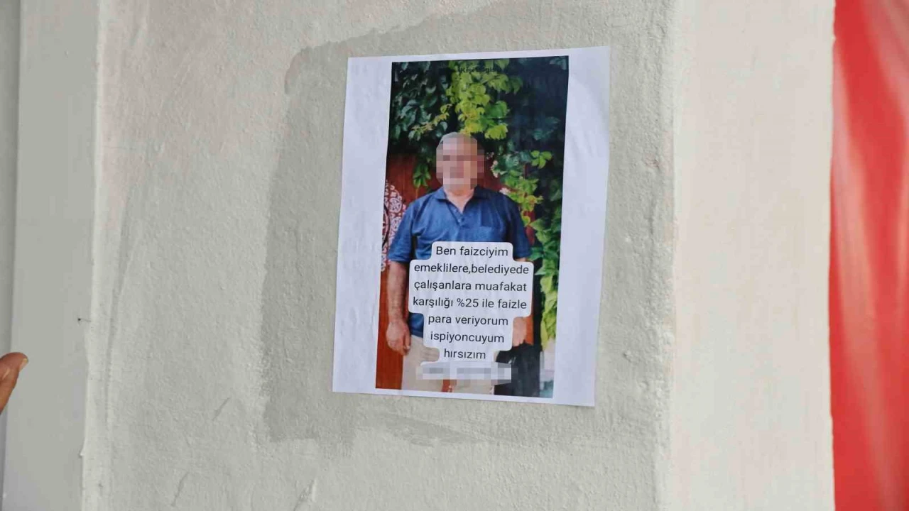 Aradan geçen 2 ayda belgeyi alamayan Osman Aslan, bunun üzerine otogarda birçok noktaya N.A.’nın fotoğrafıyla "Ben faizciyim, emeklilere, belediye çalışanlarına muvafakat karşılığı yüzde 25 faiz ile para veriyorum, ispiyoncuyum, hırsızım" yazılı ilan astı. İlanı görenler hayrete düşerken kimisi fotoğrafını çekip sosyal medya hesabından paylaştı.