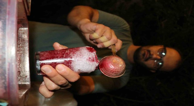 Denizli’de kent merkezindeki sıcak havadan bunalan vatandaşlar akşam vaktinde aileleriyle serinlemek için Başkarcı Mahallesine akın ediyor. Kent merkezine oranla sıcaklık farkının da oluştuğu mahallede serinlemenin bir diğer yolu da karlı şurup oluyor.