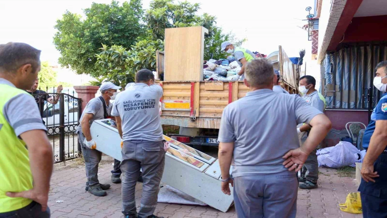 Kepez Belediyesi ekipleri, gerçekleştirdikleri temizlik operasyonuyla iki evden 8 kamyon dolusu çöp çıkardı.