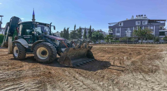 Antalya’da Kepez Belediyesi, Erenköy Mahallesi’ndeki toprak sahayı, çim futbol sahasına dönüştürüyor.