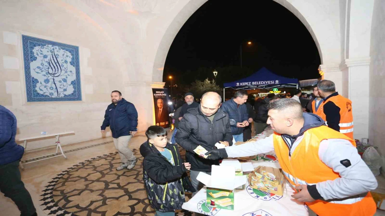 Mübarek üç ayların müjdecisi Regaip Kandili dolayısıyla Kepez Belediyesi, ilçedeki iki camide vatandaşlara ikramlarda bulundu. Kuran-ı Kerim, mevlit ve ilahilerin okunduğu camilerde eller duaya açıldı, belediyenin ikramlarıyla damaklar tatlandı. Kepez Belediyesi, Aktoprak Nur Yıl Camii ve Yeni Emek Çelebi Sultan Mehmed Camii bahçesine kurduğu stantlarda vatandaşlara lokma tatlısı ve lokum ikram etti. Birlik ve beraberlik duygularının pekiştiği, gönüllerin birleştiği gecede 5 bin kişiye lokma tatlısı ve lokum ikramında bulunuldu.