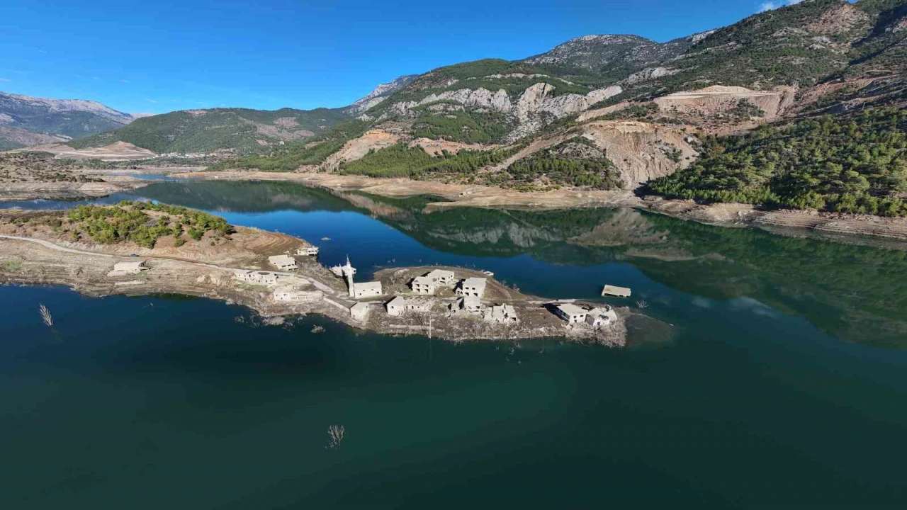 Mersin’in Anamur ilçesinde bulunan ve Kıbrıs’ın da içme suyunu karşılayan Alaköprü Barajı’nda yüzde 20’lere düşen su miktarı son yağışlarla yüzde yüz oldu, ortaya çıkan evler ve cami tekrar suya gömüldü. Kuraklık endişesi ortadan kalkarken, suya yansıyan dağların gölgesi insan silueti ortaya çıkardı.