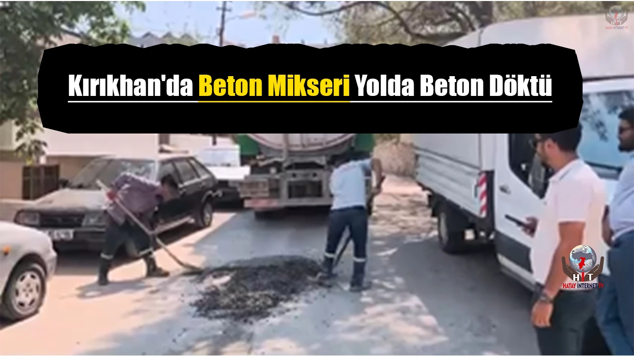 Hatay’ın Kırıkhan ilçesinde seyir halinde olan beton mikseri, yol ortasına beton döktü. Görüntülerin sosyal medyada paylaşılması üzerine firmaya bağlı ekipler tarafından yol temizlendi.