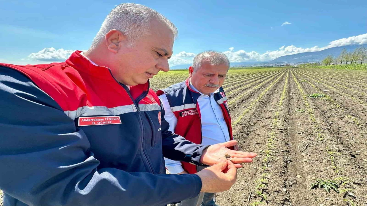 Hatay İl Tarım ve Orman Müdürlüğü ekipleri, Kırıkhan ilçesinde mısır ekili alanlarda incelemelerde bulundu.