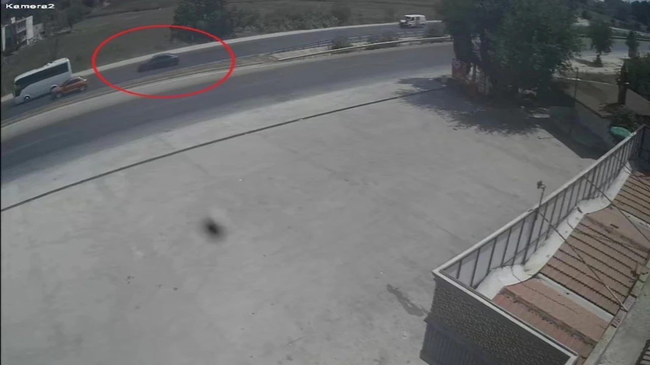 Öte yandan, kaza anı ise saniye saniye bir işyerinin güvenlik kamerasına yansıdı. Güvenlik kamerası görüntülerinde seyir halindeki otomobilin kavşak sisteminde kırmızı ışığın yanması ile duran araçlara çarpmamak için sürücüsünün direksiyonu kırdığı ve sağ şeritteki tur aracının yanından emniyet şeridine geçmeye çalıştığı, o sırada emniyet şeridinde duran motosikleti fark eden sürücünün son bir hamle yaparak motosiklete çarpmamak için otomobili yol kenarındaki tarlaya sürdüğü görüldü.