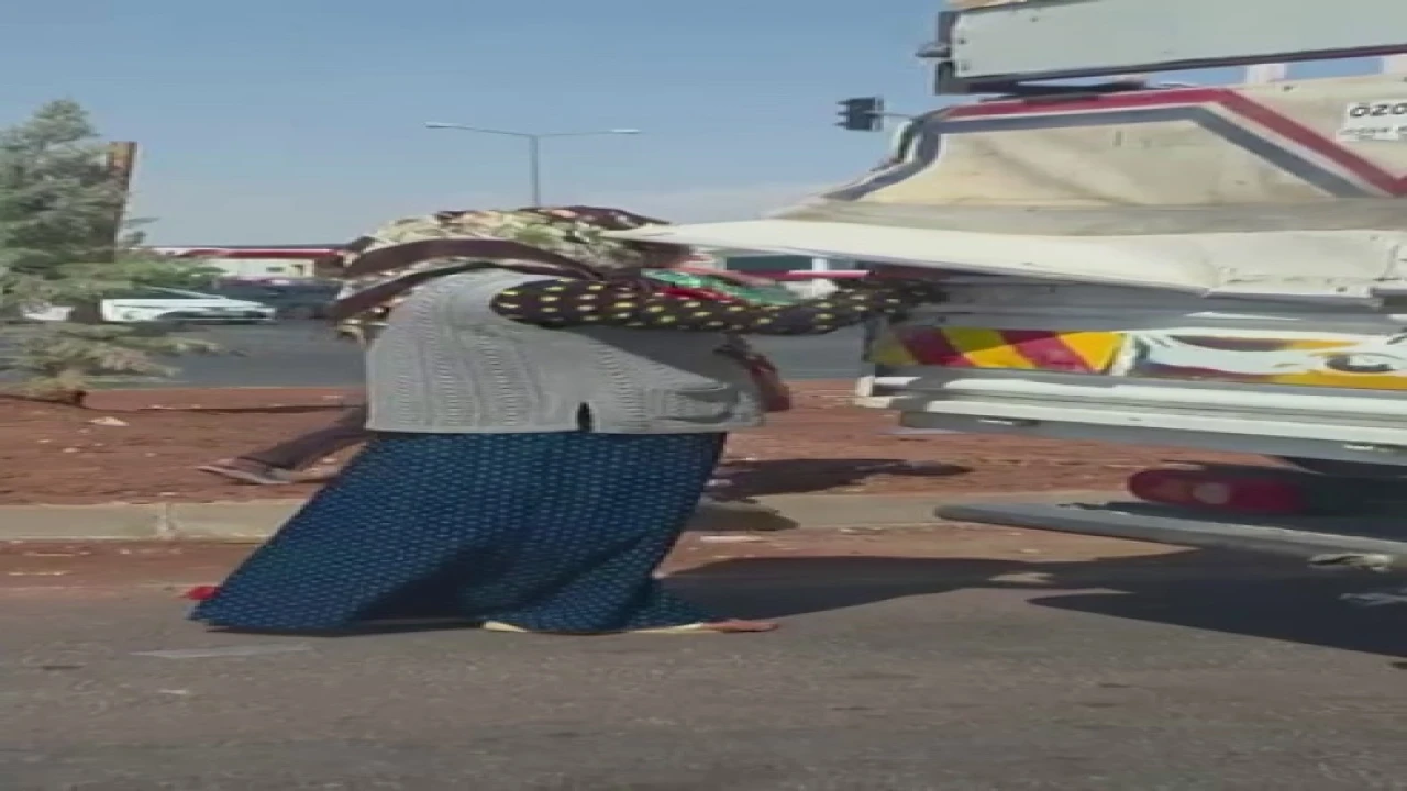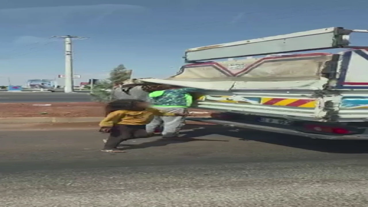 Adana’da kırmızı ışıkta duran kamyonet kasasından kırmızı biber çalan anne ve 2 çocuğu kameralara böyle yansıdı.