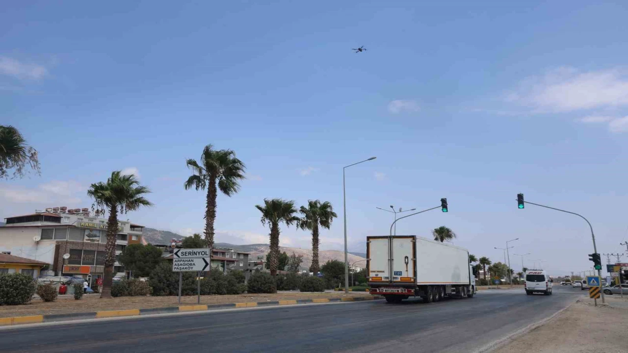 Hatay Emniyet Müdürlüğü Bölge Trafik Denetleme Şube Müdürlüğü ekiplerince kentte dron destekli trafik denetimleri aralıksız sürüyor. Kırmızı ışık, emniyet kemeri kullanımı, emniyet şeridi ihlallerine yönelik denetimlerde kurallara uymayan ve eksikliği tespit edilen araç sürücülerine idari para cezası uygulandı.