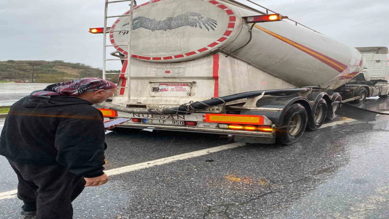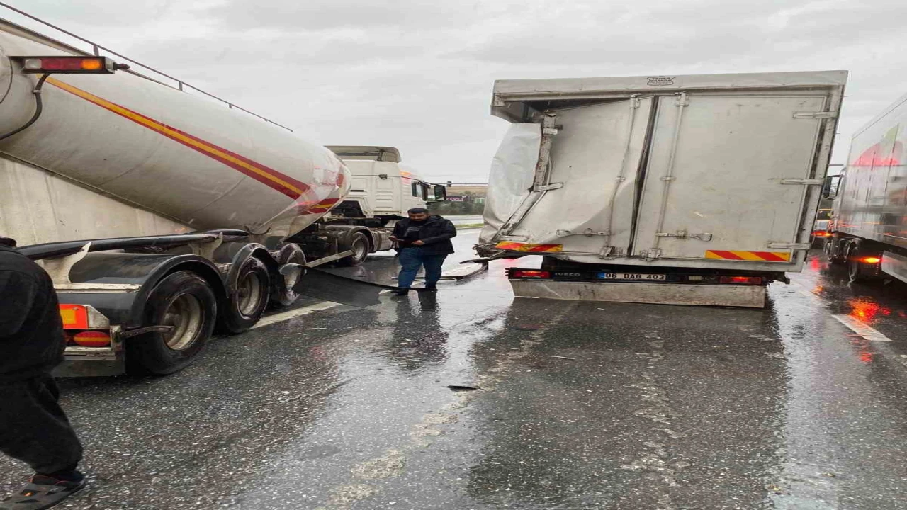 Güvenlik kamerasına saniye saniyesine yansıyan ve 3 aracın karıştığı zincirleme kaza, Alanya-Manavgat D-400 Karayolunda meydana geldi. Alanya’dan Manavgat istikametine seyir halindeki beton mikseri Tekandız mevkiinde bulunan trafik ışıklarına geldiğinde duramayarak, kırmızı ışıkta bekleyen kapalı kasa kamyonete çarptı. Kamyonet çarpmanın şiddetiyle kırmızı ışıkta önünde bekleyen damperli kamyona arkadan çarparken kamyonetin ön ve arkasında büyük çapta maddi hasar oluştu. Kazada büyük şans eseri kimsenin burnu bile kanamadı.
