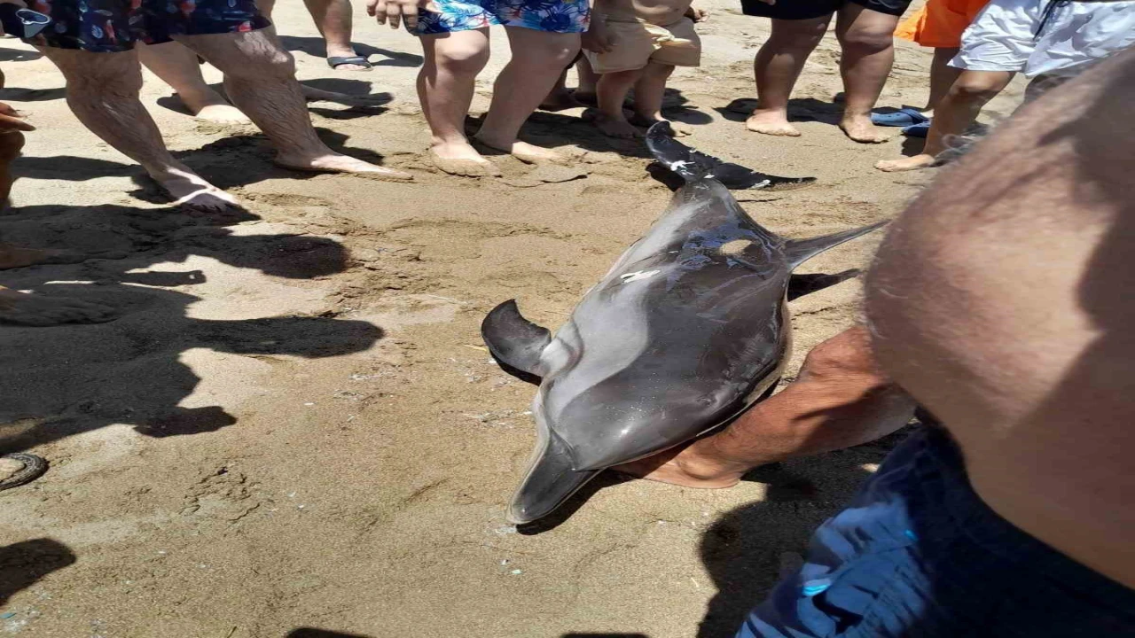 Mersin’de kıyıya vuran yunus sahildeki vatandaşlar ve görevliler tarafından tekrar denize salındı.