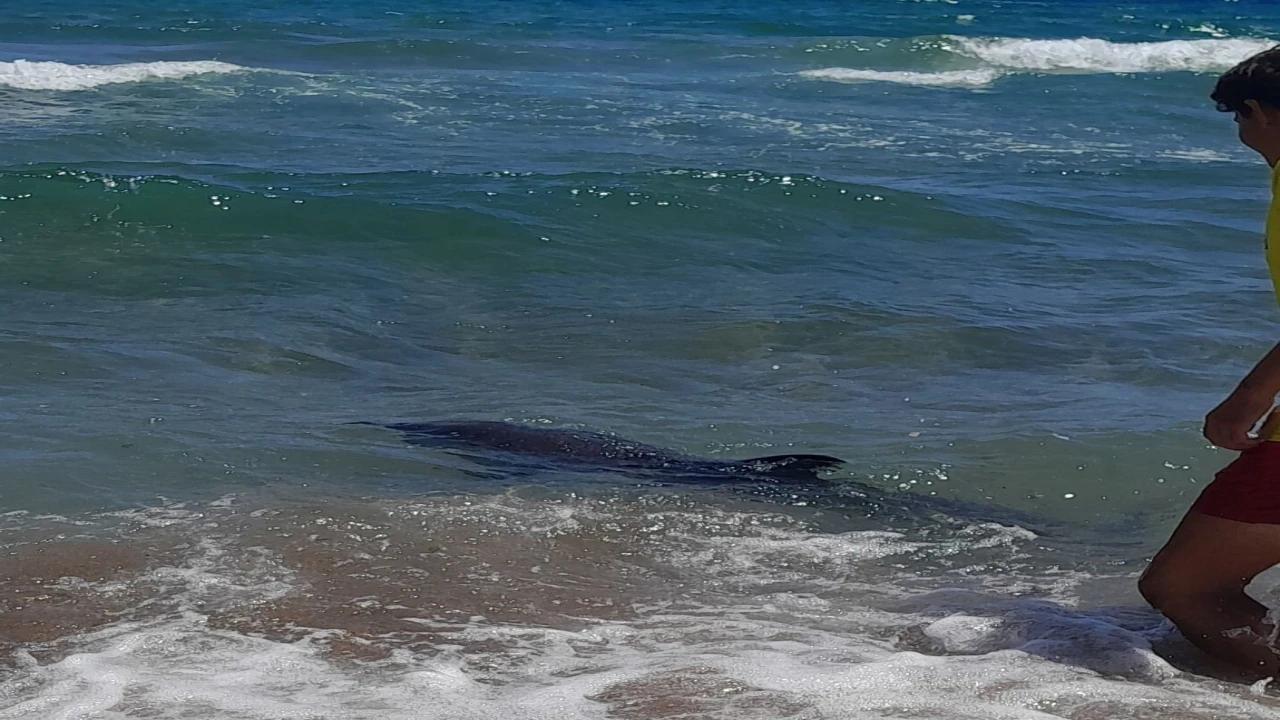 MERSİN'DE KIYIYA VURAN YUNUS SAHİLDEKİ VATANDAŞLAR DENİZLE BULUŞTURDU.