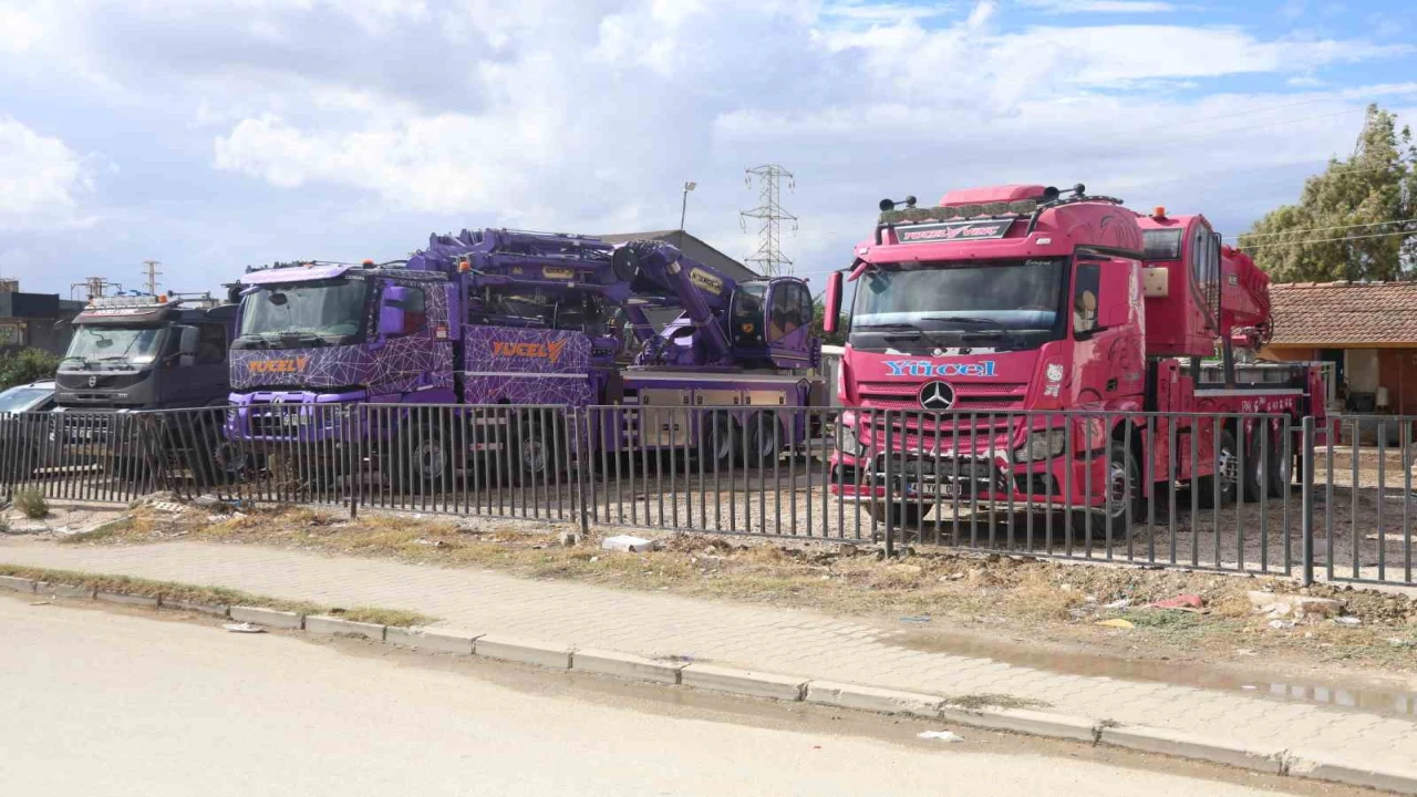 HATAY'DA VİNÇ SEKTÖRÜNDE HİZMET VEREN KAMİL YÜCEL, KIZININ ‘BABA BİZİM NEDEN PEMBE VİNCİMİZ YOK, BİZİM DE PEMBE VİNCİMİZ OLSUN' SÖZLERİNDEN İLHAM ALARAK TASARLADIKLARI; PEMBE, MOR, SİYAH VE GRİ VİNÇLERLE İNŞAAT SEKTÖRÜNE RENK KATIYOR.