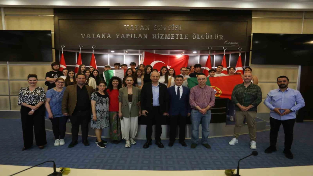 Kepez Belediye Başkanı Mesut Kocagöz, Erasmus+ KA Öğrenci Hareketliliği Projesi kapsamında ilçeye gelen Portekizli ve İtalyan öğrencileri belediye meclis salonunda misafir etti.