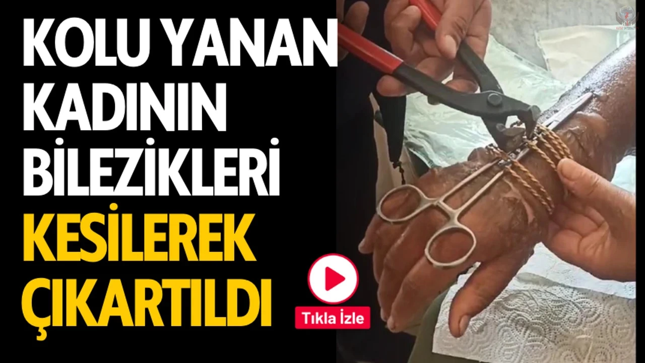 Kolu yanan kadının bilezikleri kesilerek çıkartıldı