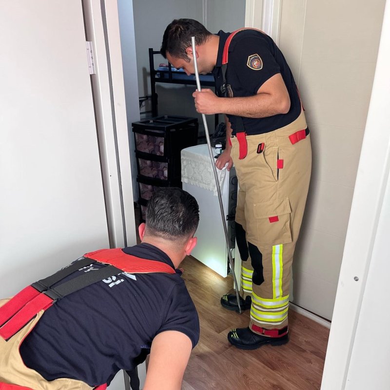 HATAY (İHA) - Hatay'da depremzede vatandaşların yaşadığı konteynere giren yılanı itfaiye yakaladı.