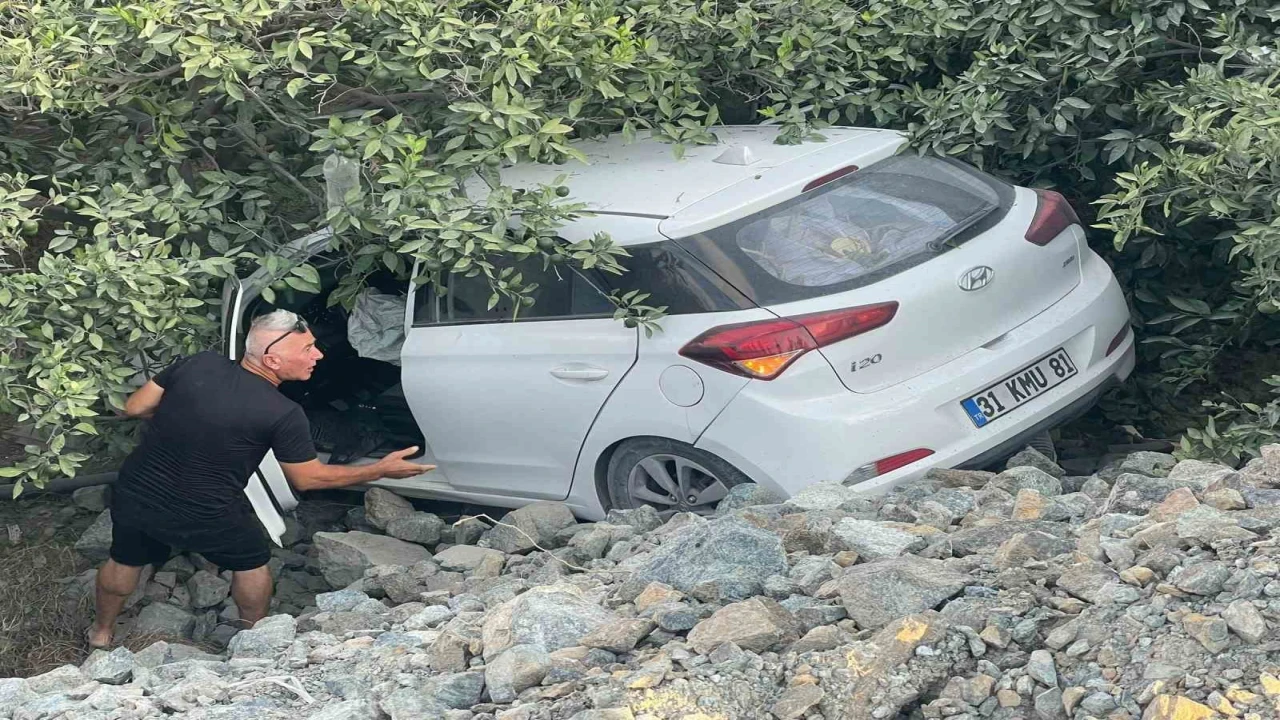 HATAY (İHA) - Hatay’da bahçeye uçan otomobilin sürücüsü yaralandı.