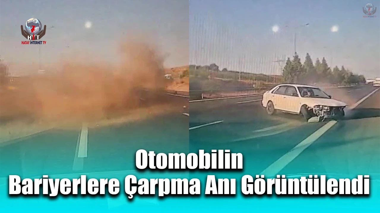 HATAY (İHA) - Hatay'da seyir halindeyken sürücüsünün kontrolünü kaybetmesiyle bariyerlere çarpan otomobilin o anları araç kamerasına yansıdı.