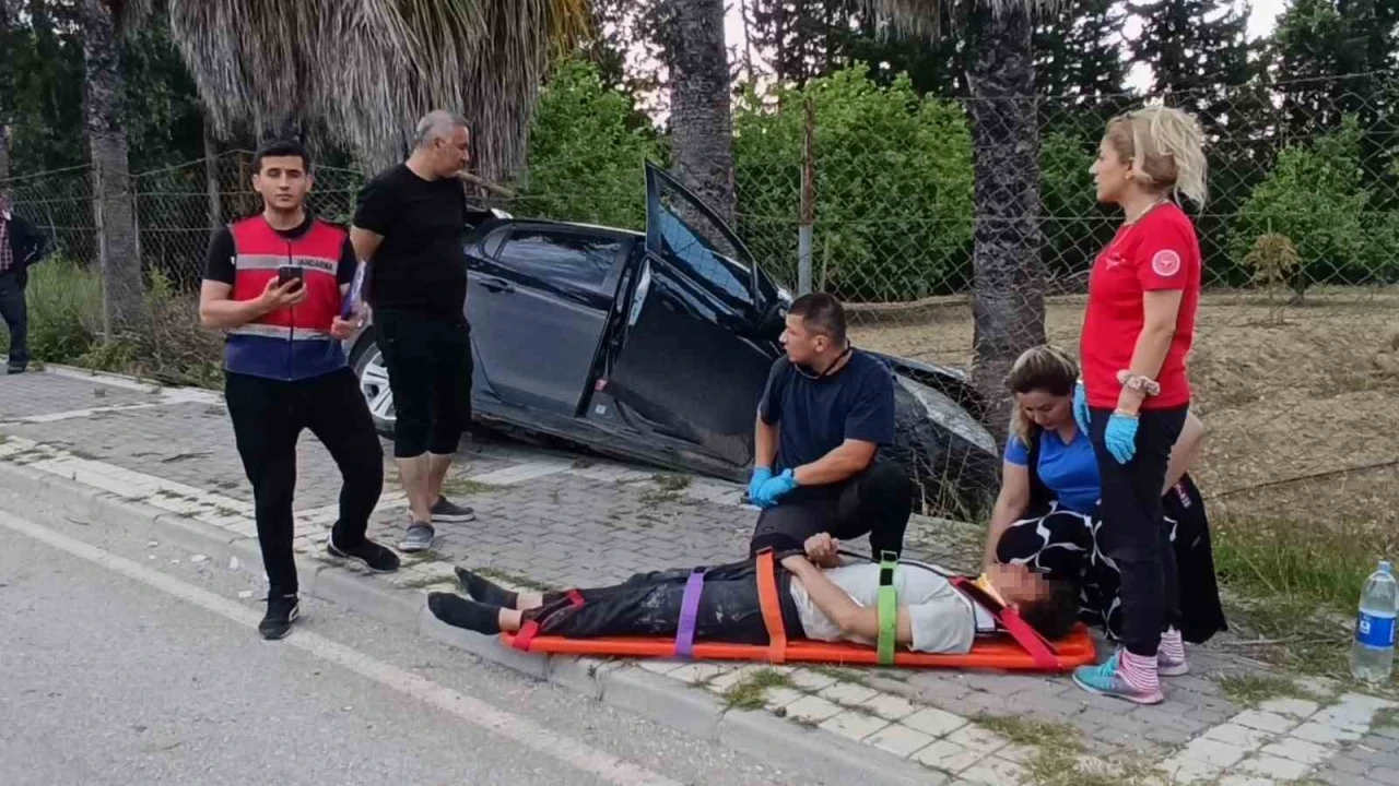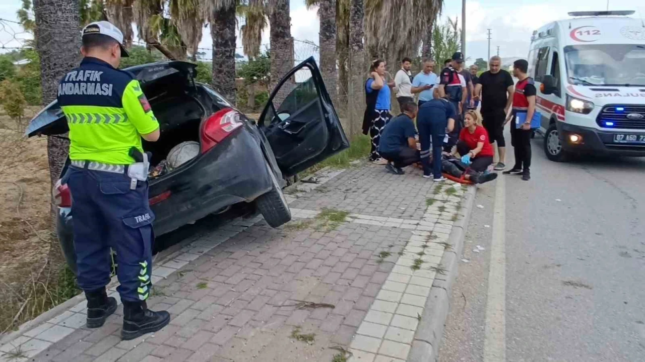 Manavgat’ta 14 yaşındaki çocuğun kullandığı otomobil yolun karşı şeride geçerek bahçedeki palmiyeye çarptı. Kazada araçta bulunan 2 kişi yaralanırken, yaralılara yardım etmeye çalışan bir vatandaş bel fıtığı nedeniyle rahatsızlanarak hastaneye kaldırıldı.