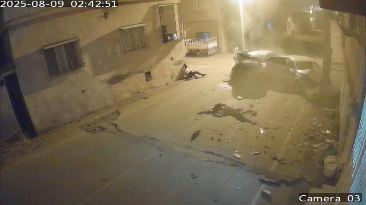 HATAY’IN İSKENDERUN İLÇESİNDE İKİ ARACIN ÇARPIŞMASI SONUCU MEYDANA GELEN TRAFİK KAZASI GÜVENLİK KAMERASINA YANSIDI.
