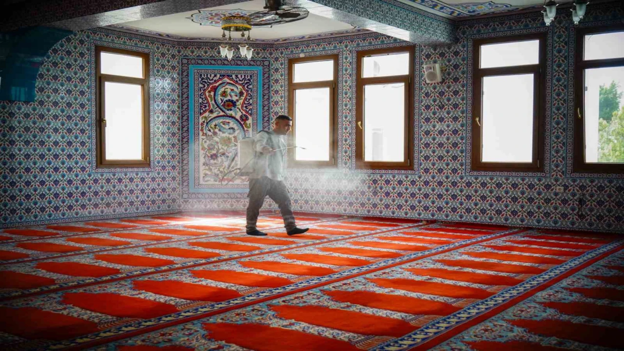 Konyaaltı Belediyesi, Ramazan Bayramı öncesi ibadethaneleri gül suyu ile temizledi.