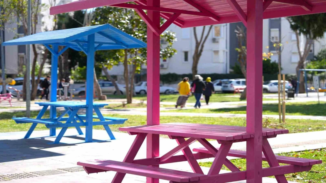 Konyaaltı Belediye Başkanı Cem Kotan’ın talimatıyla, parklarda ailelerin rahat bir şekilde vakit geçirebilmeleri için güvenlik kameraları takan Konyaaltı Belediyesi, şimdi de ilçede bulunan tüm bank ve oturma gruplarını farklı renklere boyuyor.