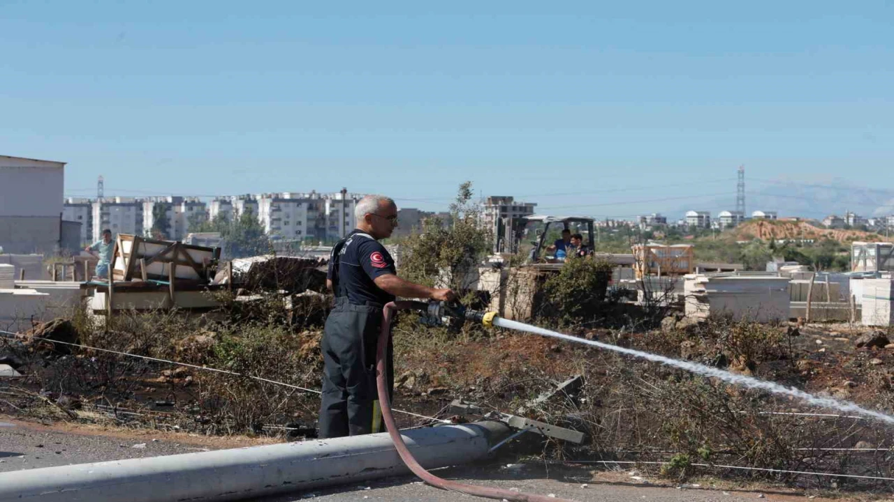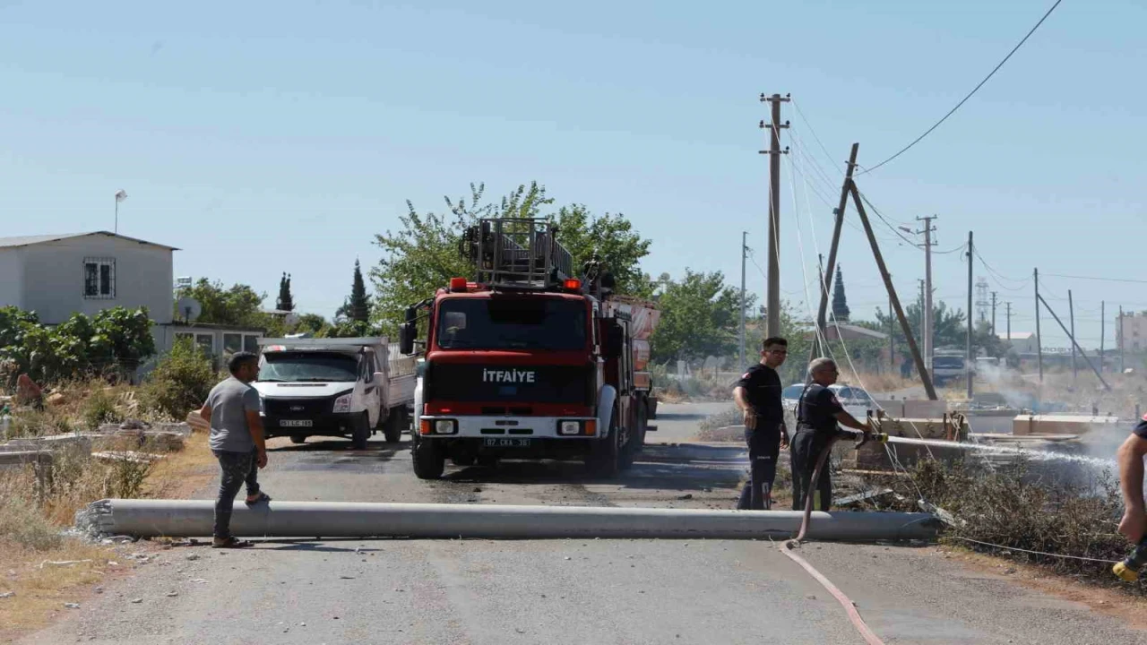 112 Acil Çağrı Merkezi’ne durumun bildirilmesi üzerine olay yerine itfaiye ekipleri sevk edildi. İkametlere yakın arazide çıkan yangın ekiplerin müdahalesi ile kısa sürede söndürülürken, yanan alanda bulunan mermer atölyesine ait malzemelerde maddi hasar meydana geldi. Akdeniz Elektrik Dağıtım A.Ş. (AEDAŞ) devrilen direk ve kopan telleri onarmak için çalışma başlattı. Olaya şahit olan bölgedeki bir iş yeri çalışanlarından Hasan Efe Şahal, "Karşısına köpek çıkmış, karşıdan da gelen arabaya çarpmamak için direksiyonu kırınca direğe vurmuş. Direkte yıkılınca elektrikler kesildi bizim dükkanda. Çıkıp baktığımızda alev almış buralar. Otlar ve mermerler falan yandı" dedi.