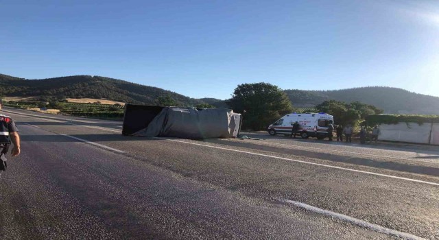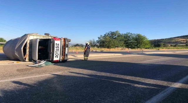 Manisa’nın Sarıgöl ilçesi Dindarlı Mahallesinde seyir halindeki bir kamyon, önüne çıkan köpeğe çarpmamak için sürücüsünün direksiyon hakimiyetini kaybetmesi sonucu devrildi. Kazada kamyonda bulunan iki kişi yaralandı.