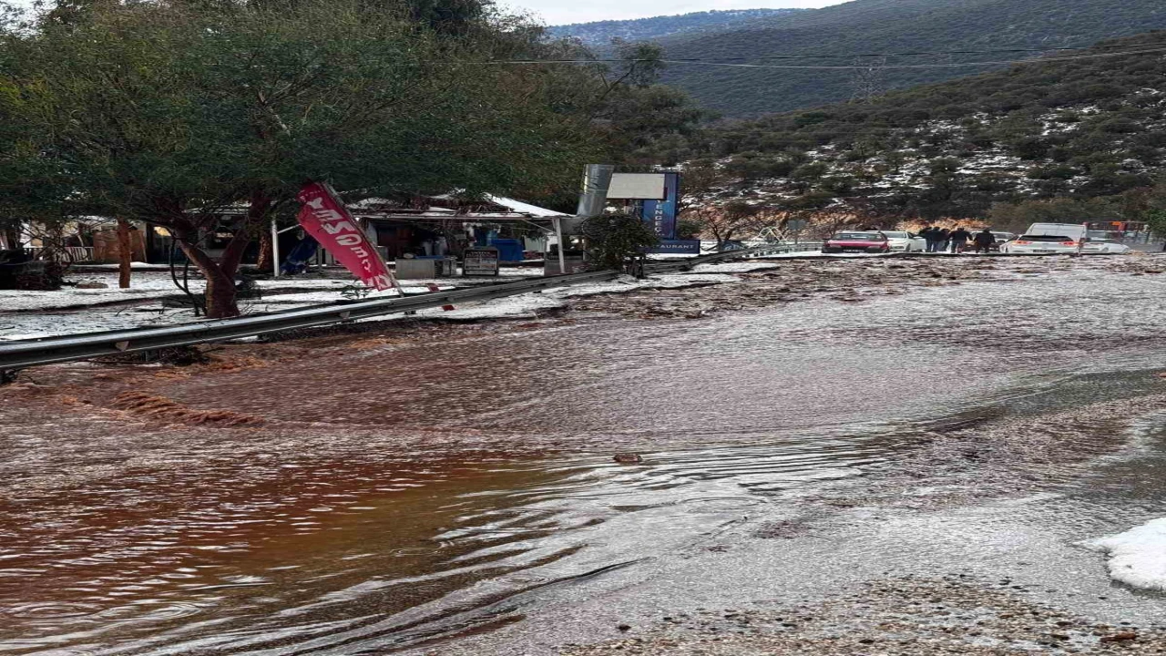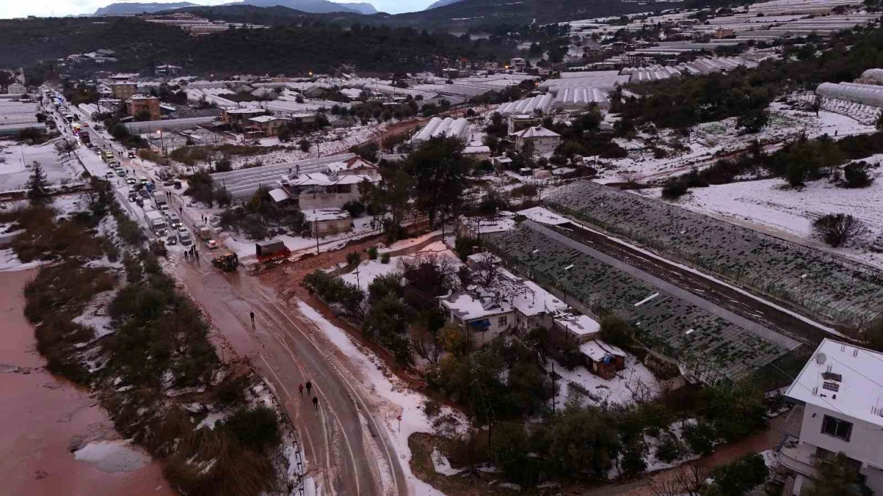 Antalya’nın Demre ilçesinde etkili olan dolu seralara zarar verdi, şiddetli yağış sele neden oldu. Dolu ve sel nedeniyle yollar ulaşıma kapanırken, denize akan çamur nedeniyle Demre sahilleri kızıla boyandı.
