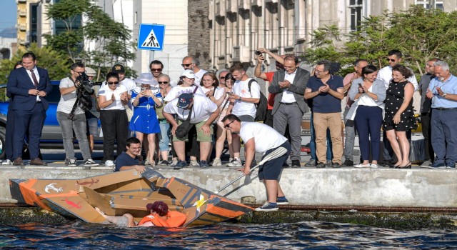 İzmirli mimar ve mühendislerin her yıl Kabotaj Bayramı’nda düzenledikleri “Kartondan Tekneler” yarışmasında heyecanlı dakikalar yaşandı. Bazı tekneler suya iner inmez batarken, iki tekne, kıyıdan yaklaşık 30 metre açıkta duran sahil güvenlik teknelerine kadar gidip tekrar kıyıya batmadan ulaştı.