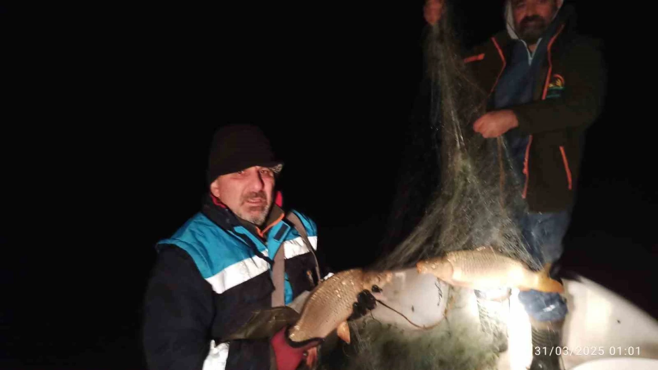 Isparta su ürünleri kontrol ekipleri tarafından yapılan denetimde sahipsiz bin 200 metre uzatma ağına el konuldu, yakalanan sazanlar göle bırakıldı.