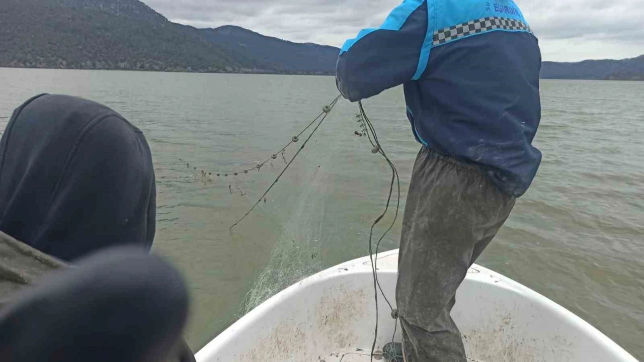 Isparta’nın Eğirdir ilçesindeki Kovada Gölü Milli Parkı’nda yapılan denetimlerde, yasak dönemde suya bırakılan yaklaşık 600 metre uzunluğunda uzatma ağı ele geçirilirken, ağdaki canlı balıklar tekrar göle bırakıldı.