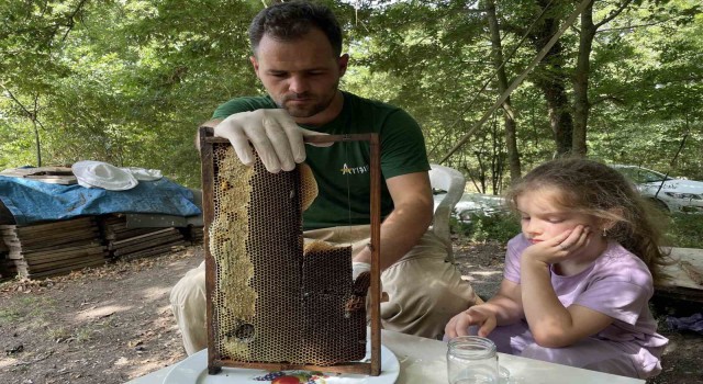 Yeşil renkteki balı incelenmesi için üniversiteye gönderdiğini aktaran Ali Uyar, “10 yıldır sabit olarak buradayım. Bu bölge ıhlamur balı ve akasya balı açısından üretim yaptığımız bir bölge. Aslında biz de faaliyet olarak burada sabit olarak arı üstü üretiyoruz. Arı üstünün yanında da ıhlamur balı ve akasya balı üretimlerini gerçekleştiriyoruz. Yaklaşık iki hafta önce bir kovanımızda yeşil renkte bir sıvı gördüm. Ondan sonra diğer gözlemlerimde de diğer kovanlara baktığımda da herhangi bir emare yok bu üründen getirmiyordu. Bu ürünü aldım üniversiteye tahlile gönderdim. Sonuçlarını bekliyoruz. Ben daha çok havaların sıcaklığından geceleri çiğ yağdığında oluşan bir fruktozun olduğunu düşünüyoruz herhangi bir yem veya katkı maddesi olduğunu düşünmüyorum çünkü diğer kovanlarda getirirdi. Öyle bir şey olmadığı için şu anki benim fikrim bir bal türü olduğunu düşünüyoruz” dedi.