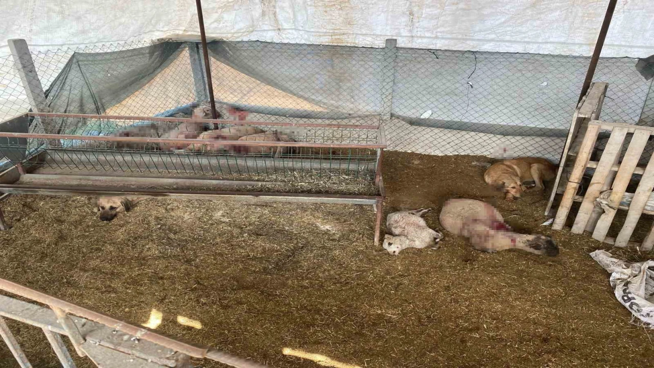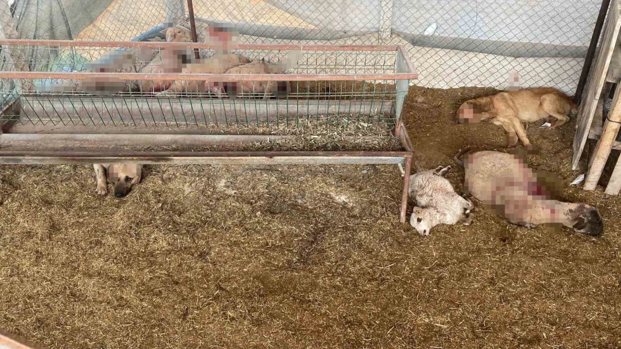 Osmaniye’de Harun Ede’ye ait ahırda bulunan koyun ve kuzulara saldıran sokak köpekleri, ahırda uyuyakaldı.
