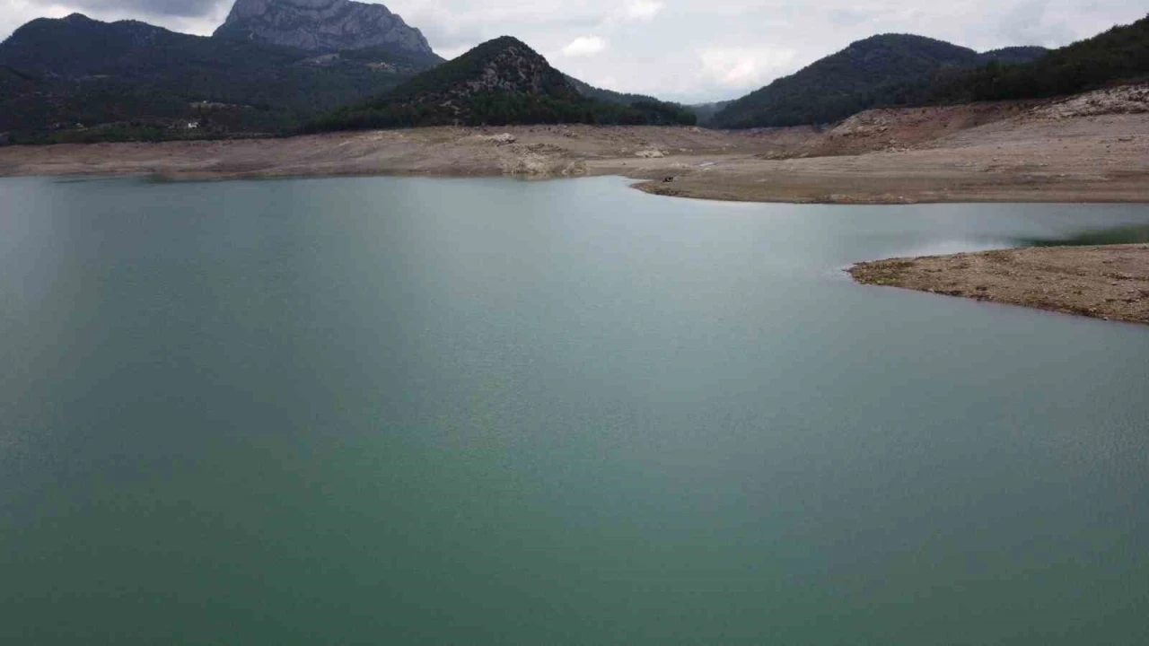Doluluk oranı yüzde 10’un altına gerileyen barajın suyla dolu manzarası yerini kuruyan göl yatağına bıraktı. Bölge sakinleri artık suyun çekildiği karasal alanda araçlarıyla dolaşabilirken, bölgeyi besleyen su yataklarının son hali dron ile görüntülendi.