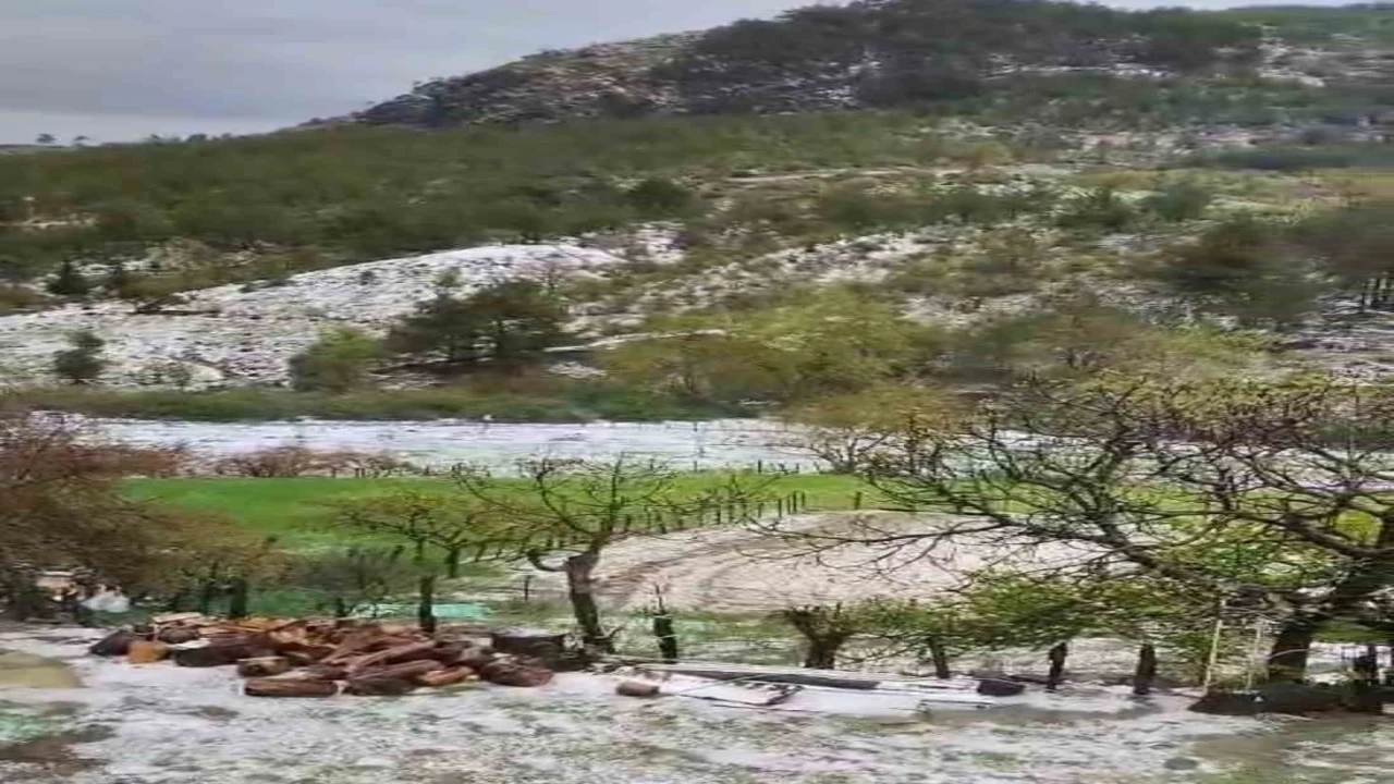 Bazı bölgeleri beyaza bürüyen dolu, ekili tarım alanlarına da zarar verdi.